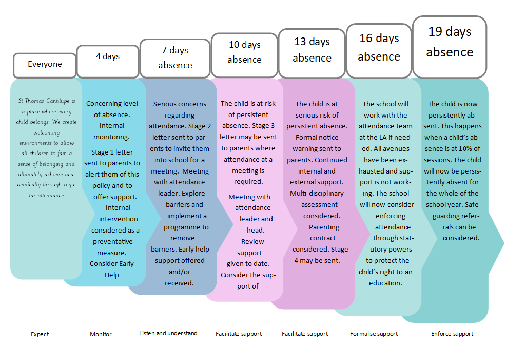 We will always support children during each stage of our Attendance Support Map. If there is lack of engagement or concerns regarding the reason for absence, we will follow the Map to ensure we prioritise a child’s learning and right to education. Where a child’s attendance improves we will communicate to Parents/Carers.